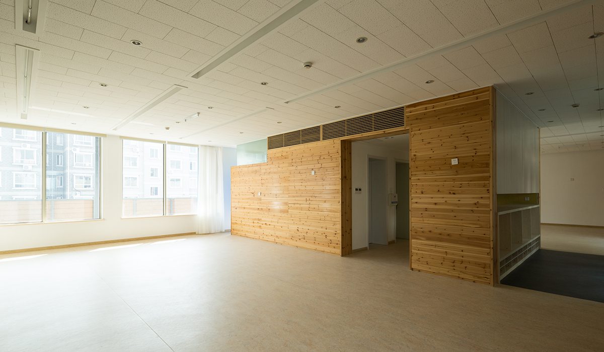张家港新纽顿幼儿园的设计是既有建筑的改建项目,方案对原有建筑的结构、外观、室内进行了全面改造。与中国传统幼儿园不一样,张家港新纽顿幼儿园追求更开放与亲切的园区环境。设计将原有建筑群的中部露天空间,改造成室内中庭,兼容幼儿园大厅与孩子们的室内活动的功能要求。所有教室都环绕着中庭分布,孩子们通过走道进入各个教室,全过程在视觉上是开放的。视觉的开放与行动的共享,为孩子们提供相互交流的机会,也为老师提供守护的便利。中庭还是幼儿园各类活动与典礼的举办地,是孩子与家长美好记忆的诞生地。张家港新纽顿幼儿园是苏州地区首家将中庭空间巧妙融入育儿教育的幼儿园。