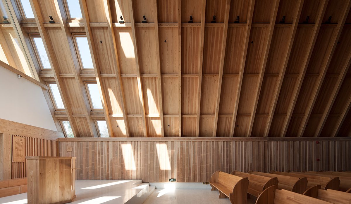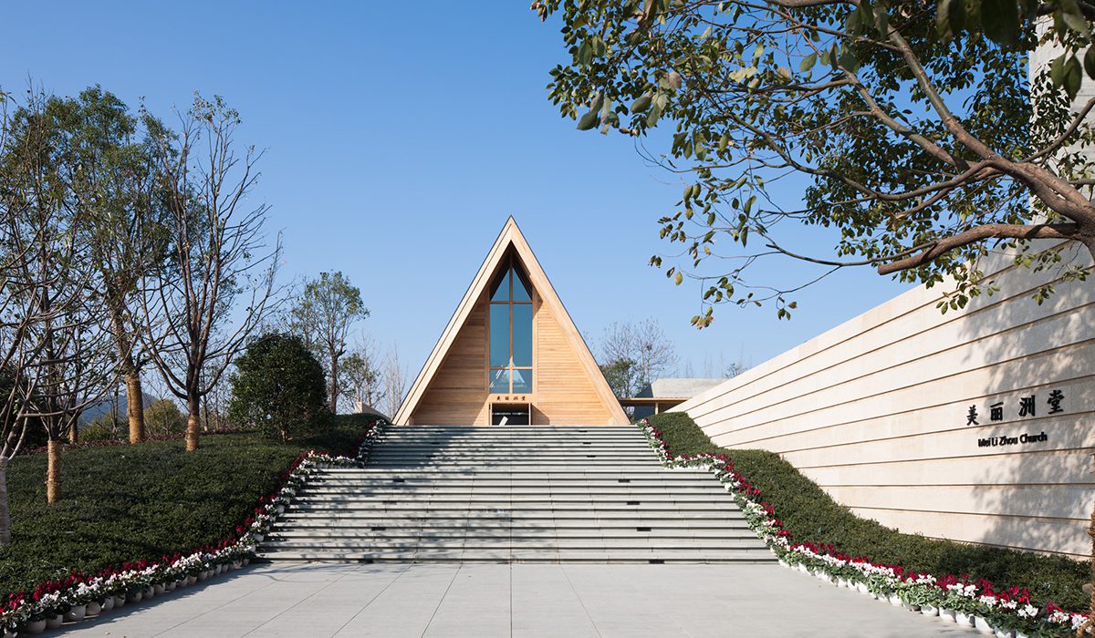 Nestled in a wooded environment in Hangzhou China, MEI LI ZHOU CHURCH seamlessly merges into the existing natural environment, while establishing a close relationship with the local communities. MEI LI ZHOU CHURCH was created to be a spiritual retreat for residents and visitors of all religious beliefs, despite its Christian religious foundation. Embraced by nature, the bell tower of the MEI LI ZHOU CHURCH became a local landmark amongst the forest. The cloister allows the locals to bless their lives and re-establish their spiritual relationship with nature and the world.
